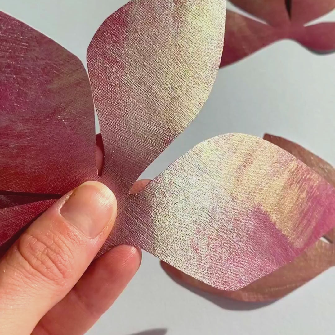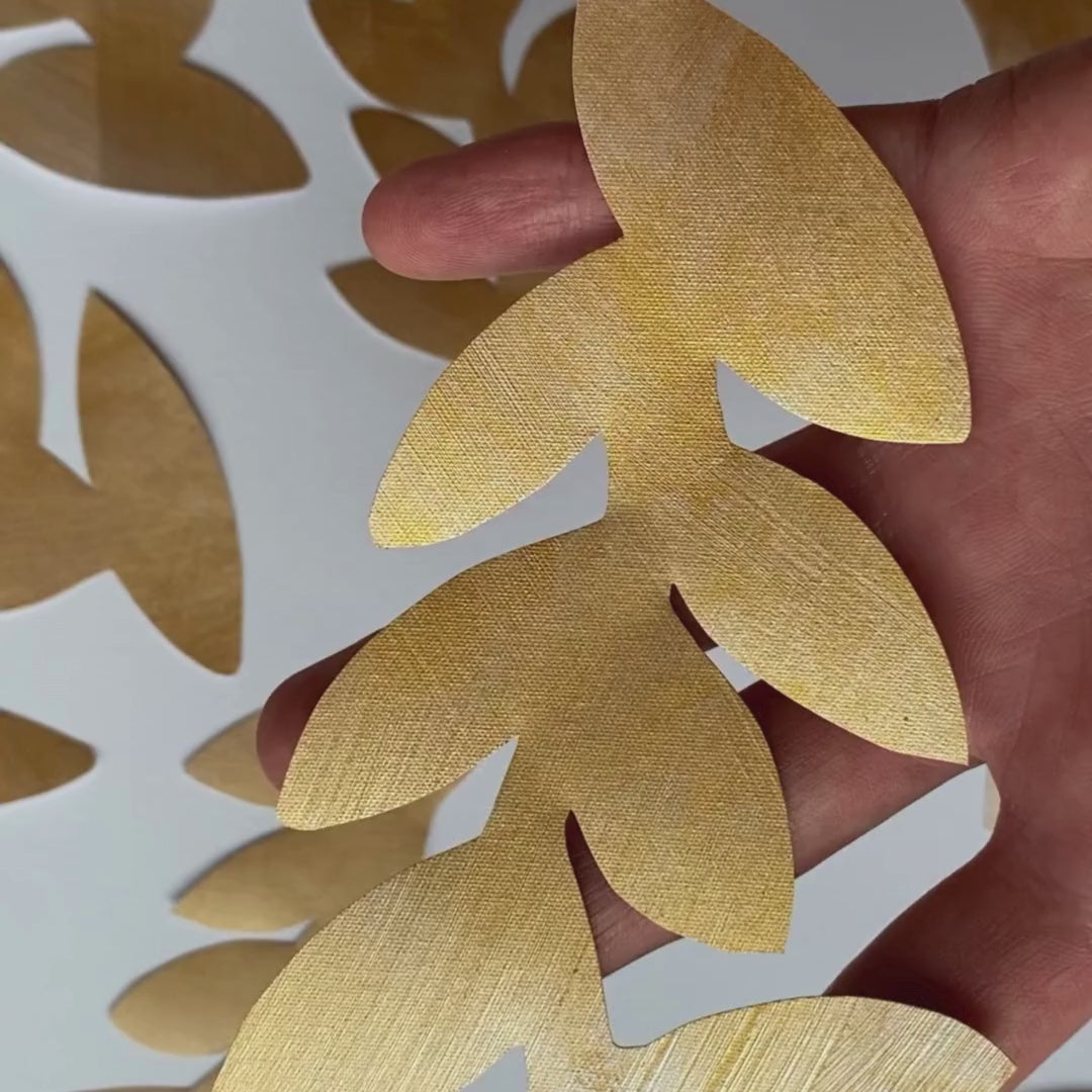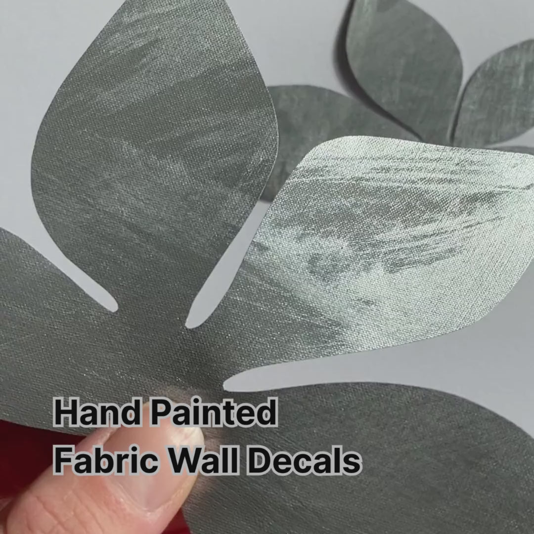 Transform your walls with this beautiful set of hand-painted leaf decorations – an artistic self-adhesive wallpaper border made of textile wallpaper, cut into individual branches with leaves, giving you complete freedom to create your own personal wall design.